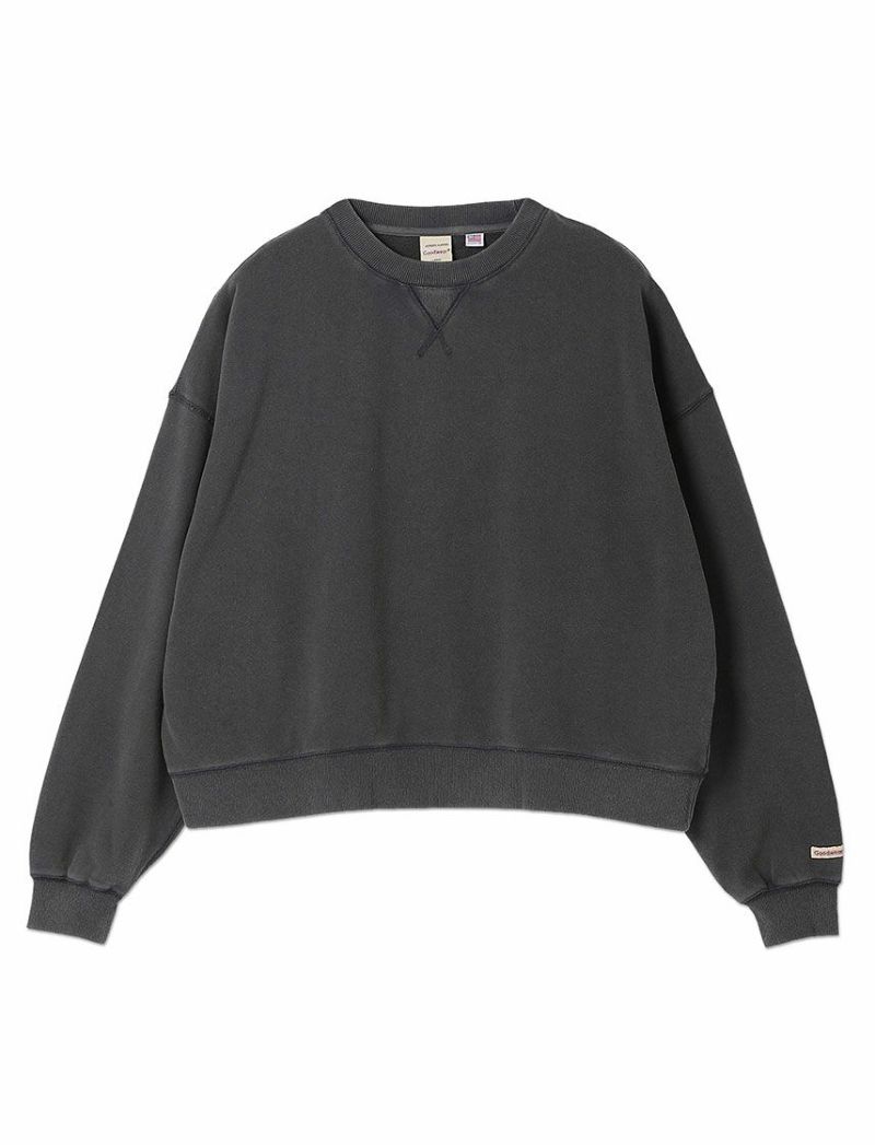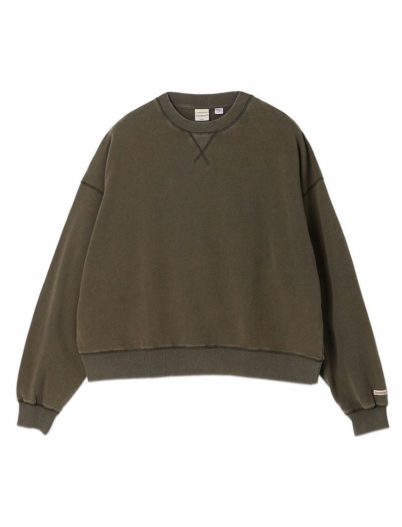 Goodwearの製品染めトレーナー。BIGシルエットをベースに、身丈を短めにしたシルエットです。