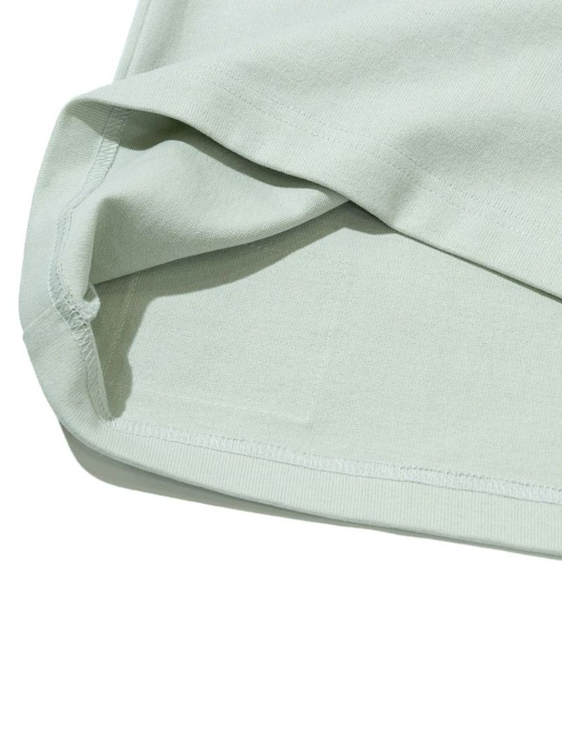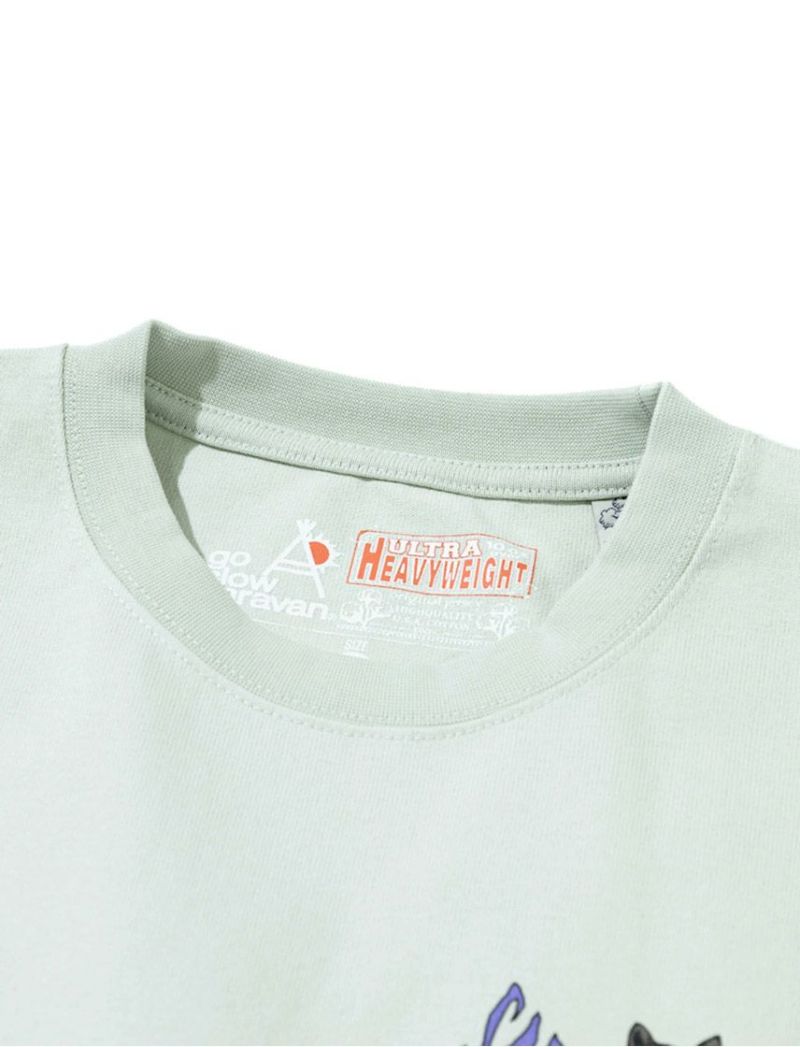 【ULTRA HEAVYWEIGHT】USAコットン16番手単糸2本を撚り合わせ、"双糸"で編んだ10oz以上の超ヘビーウェイトなオリジナル生地を使用。双糸で編み上げる事ではっきりと糸目が見え、キレイめな生地の見栄えに。USAコットンらしいシャリ感もあり通常のTシャツ生地よりも2.5~3倍の強度がある丈夫な生地になっています。Tシャツとスウェットの中間くらいのイメージで幅広い季節に対応します。