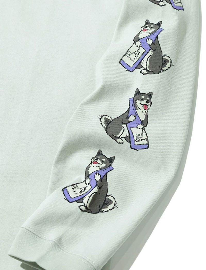 ご機嫌な柴犬を晩酌のお供に。ボディーカラー毎に茶柴と黒柴がプリントされた、ヘビーなベーシックシルエットのロングスリーブT。バックサイドにはシリーズのオリジナルネームが付いています。