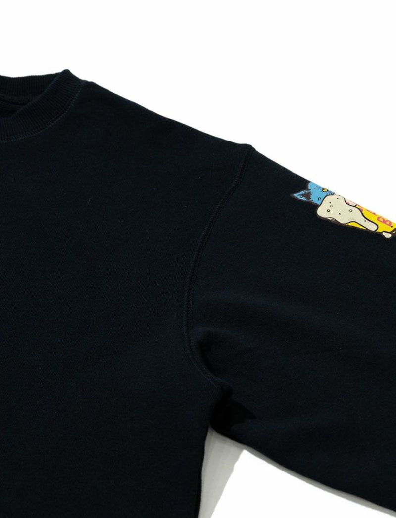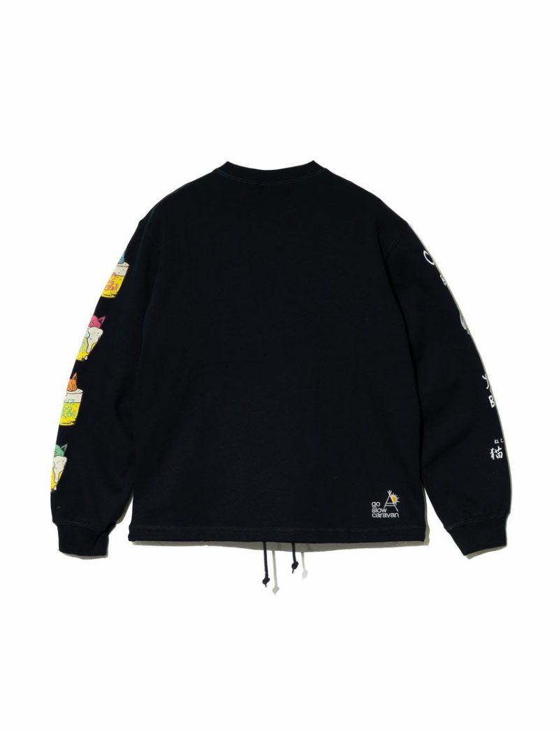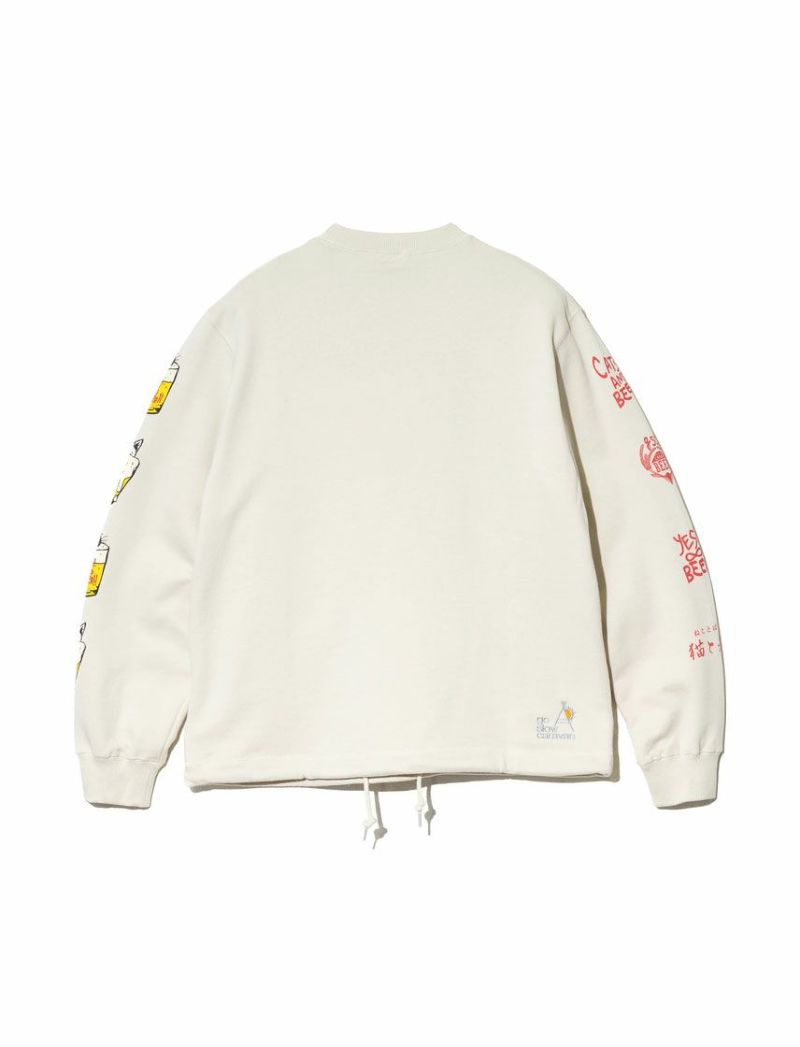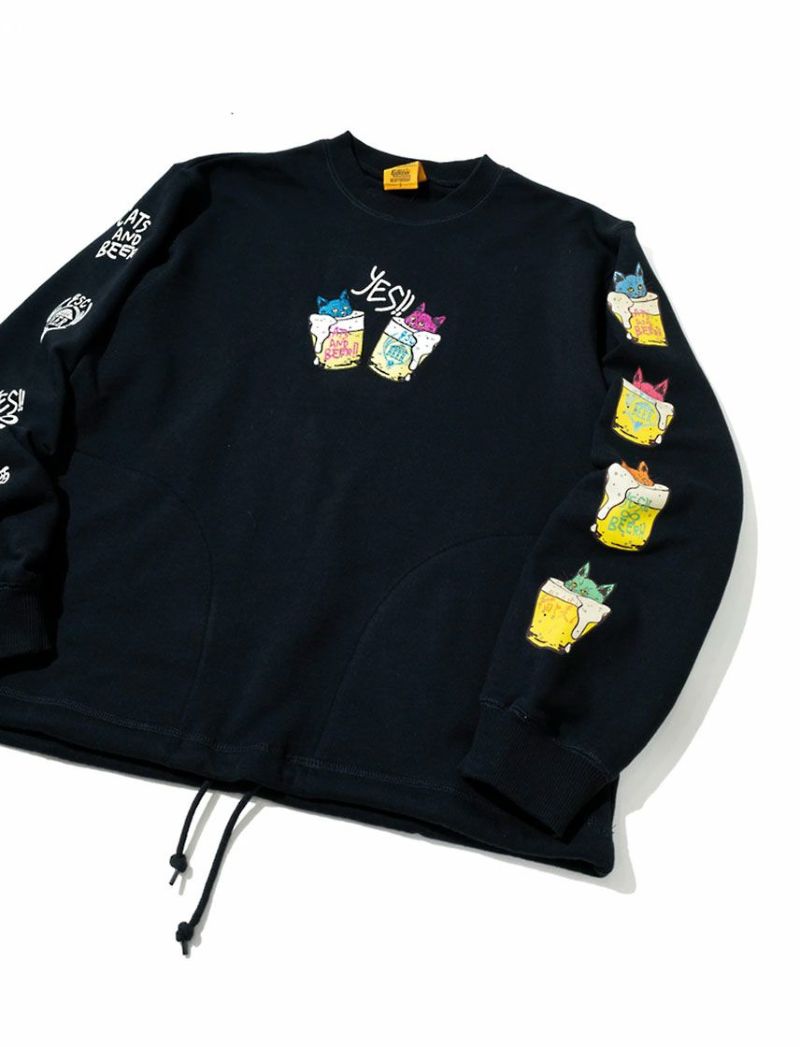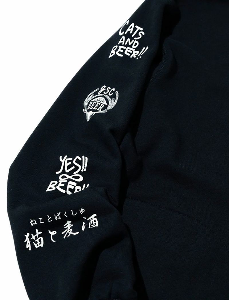 前身頃にはボディカラーごとに異なる猫と麦酒の刺繍をオン。袖には愛嬌たっぷりの“猫と麦酒”プリントを施し、シリーズらしい遊び心を効かせた1枚です。