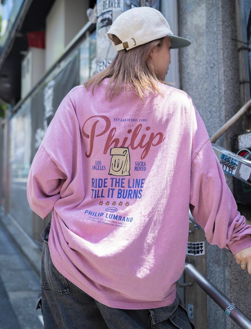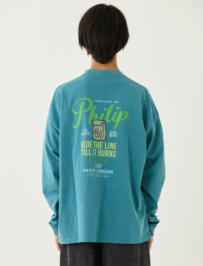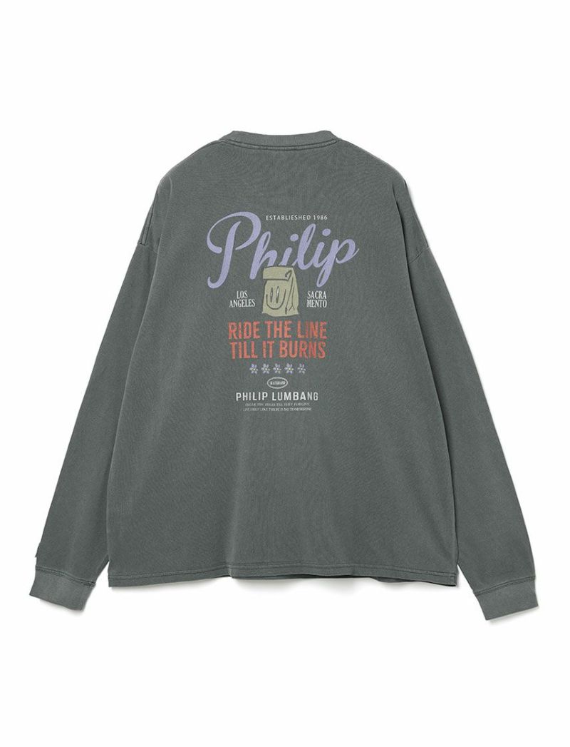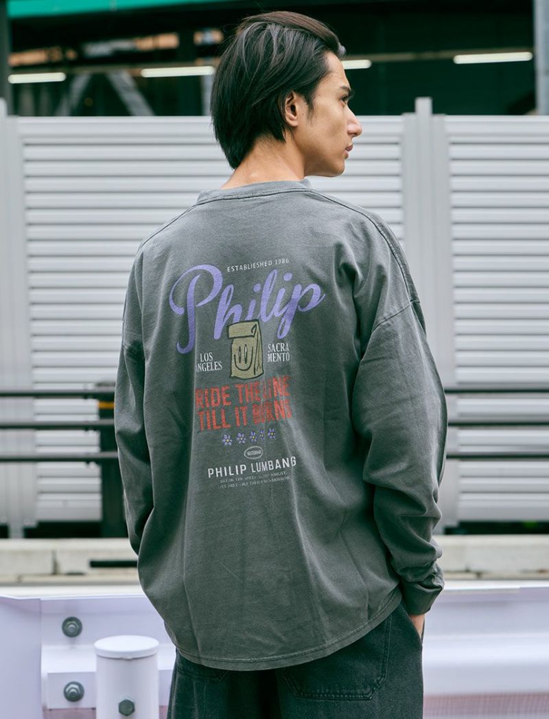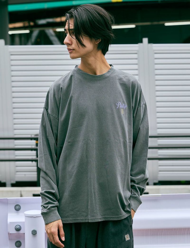 Philip LumbangのロンT。ビッグシルエットです。カスレ、製品ピグメント加工を施し、トレンドの加工感があるアイテムに仕上げました。