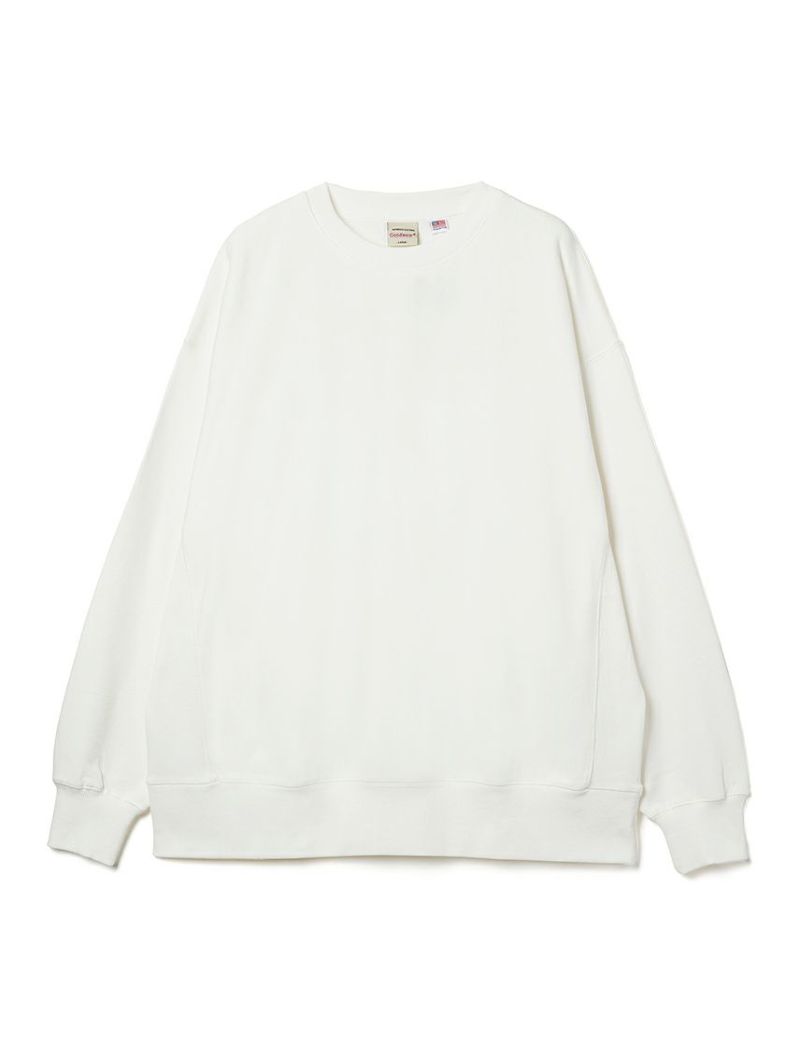 定番のBIGシルエットをベースにグレーディングした新シルエット。身頃の地の目を横に裁断し、両脇、袖はリブで切り替えることで、縮みによる動きづらさを解消。よりタフでオーセンティックなトレーナーに仕上げました。
