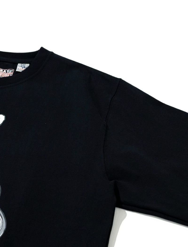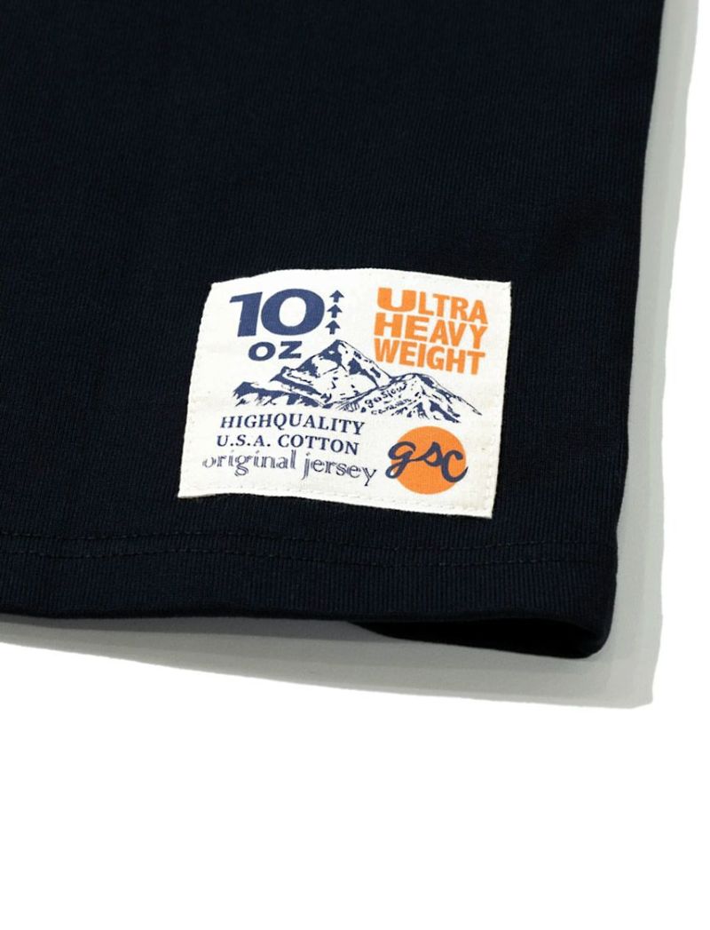 【ULTRA HEAVYWEIGHT】USAコットン16番手単糸2本を撚り合わせ、"双糸"で編んだ10oz以上の超ヘビーウェイトなオリジナル生地を使用。双糸で編み上げる事ではっきりと糸目が見え、キレイめな生地の見栄えに。USAコットンらしいシャリ感もあり通常のTシャツ生地よりも2.5~3倍の強度がある丈夫な生地になっています。Tシャツとスウェットの中間くらいのイメージで幅広い季節に対応します。