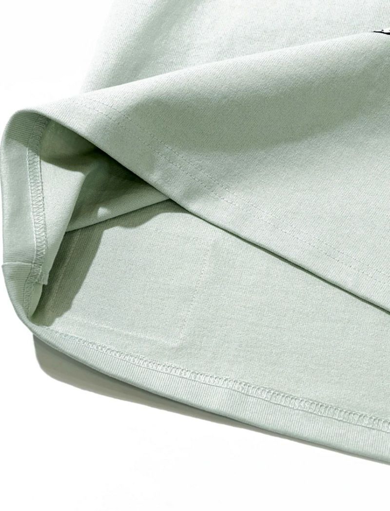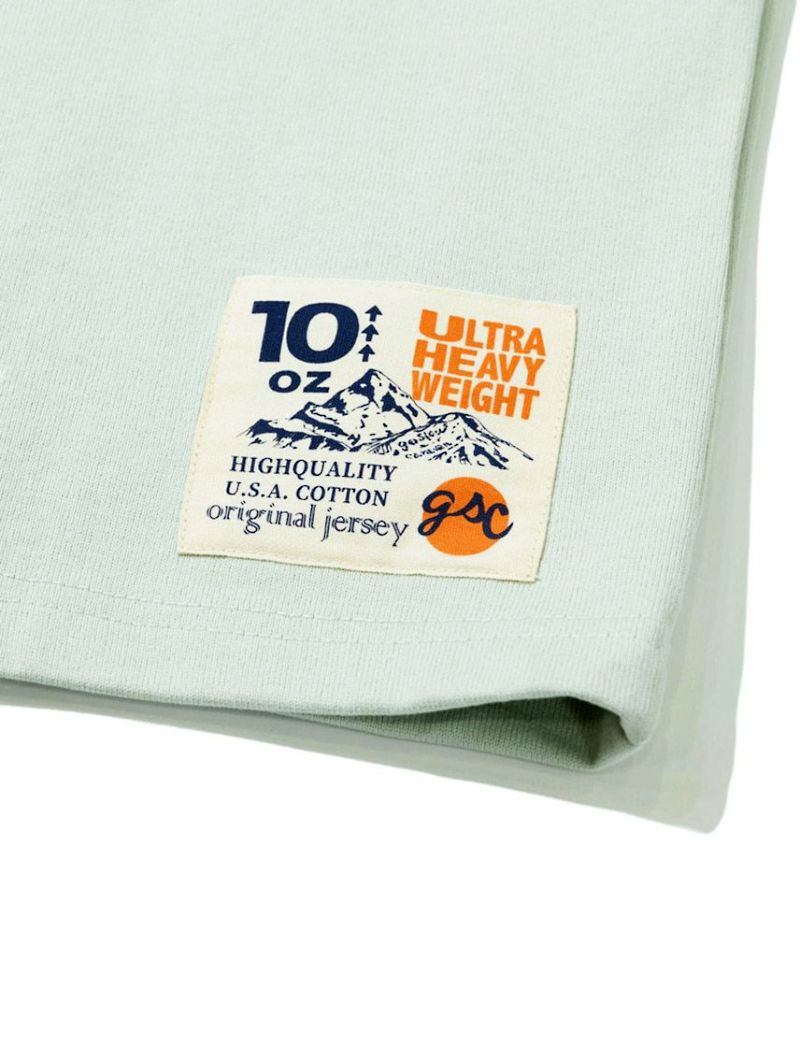 【ULTRA HEAVYWEIGHT】USAコットン16番手単糸2本を撚り合わせ、"双糸"で編んだ10oz以上の超ヘビーウェイトなオリジナル生地を使用。双糸で編み上げる事ではっきりと糸目が見え、キレイめな生地の見栄えに。USAコットンらしいシャリ感もあり通常のTシャツ生地よりも2.5~3倍の強度がある丈夫な生地になっています。Tシャツとスウェットの中間くらいのイメージで幅広い季節に対応します。