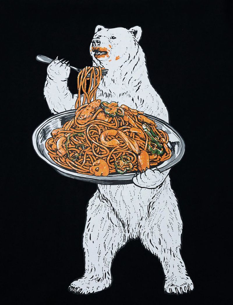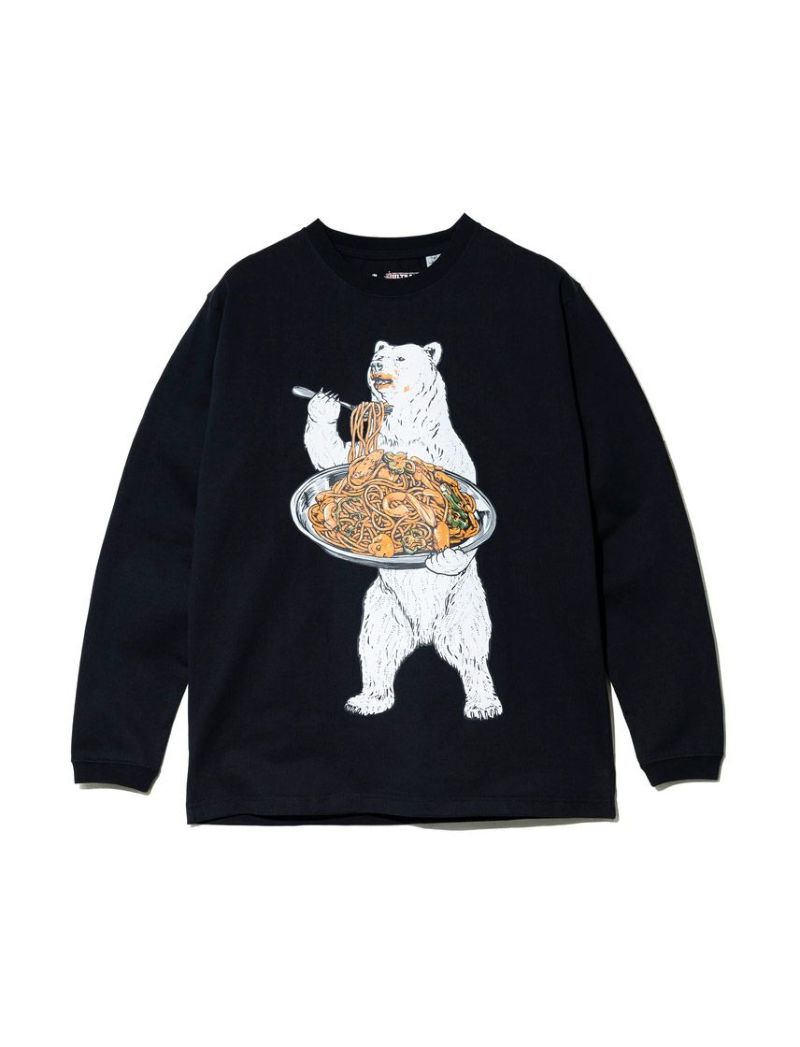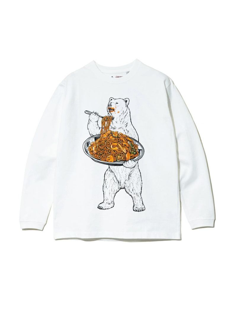 《ナポリタンクマ ロングスリーブ TEE》 昔懐かし昭和喫茶のナポリタンを頬張るわんぱくなクマ。ヘビーなベーシックシルエットのロングスリーブT。バックサイドにはシリーズのオリジナルネームが付いています。