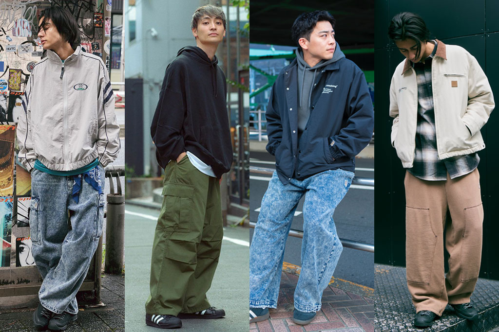 どこか懐かしい空気を、いまのサイズ感で再構築しているのが魅力。ワイドパンツやルーズトップスで、簡単に今っぽいバランスが作れます。